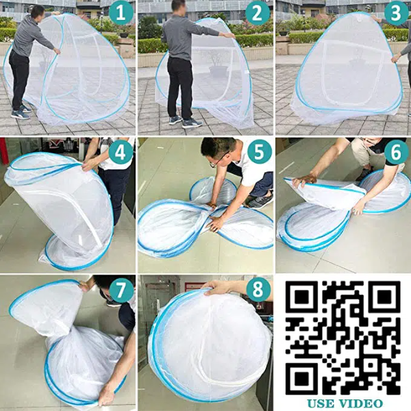 الخيمة عبارة عن شبكة ذات عيون صغيرة جدا تمنع دخول الناموس و جميع أنواع الحشرات إلى داخلها وتجعلك تنام في الراحة التامة بعيدا عن لسعات الناموس التي تنقل الأمراض.