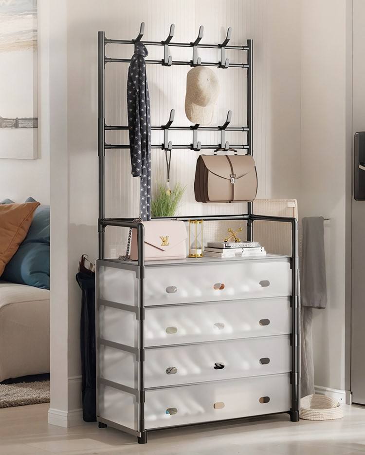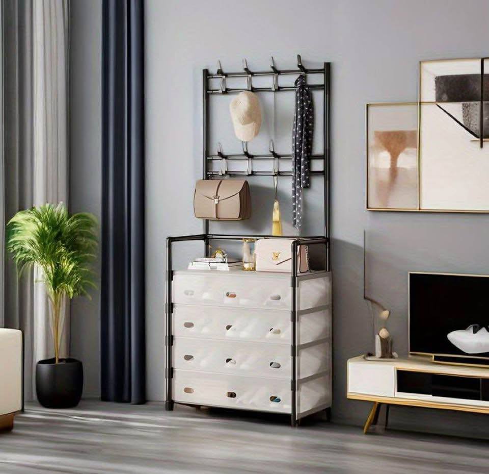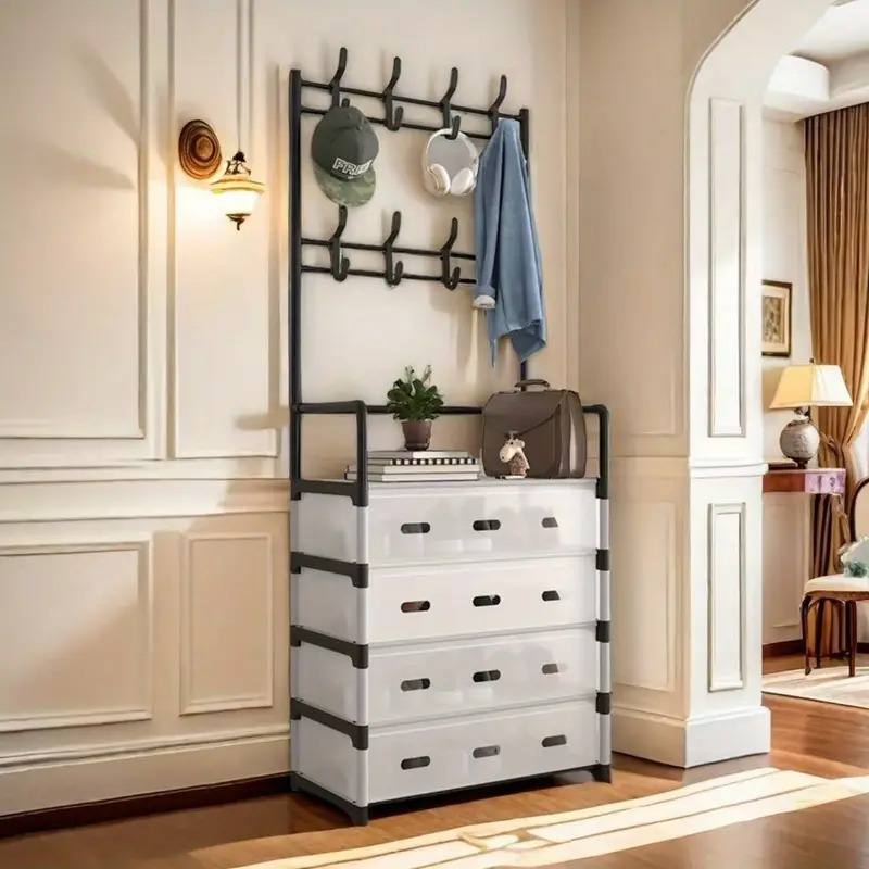 تخيل شعورك وأنت تدخل إلى منزلك المرتب بعد يوم طويل. رف التنظيم 2 في 1 المتعدد يمنحك مكاناً لكل شيء، مما يجلب لك راحة البال و الهدوء