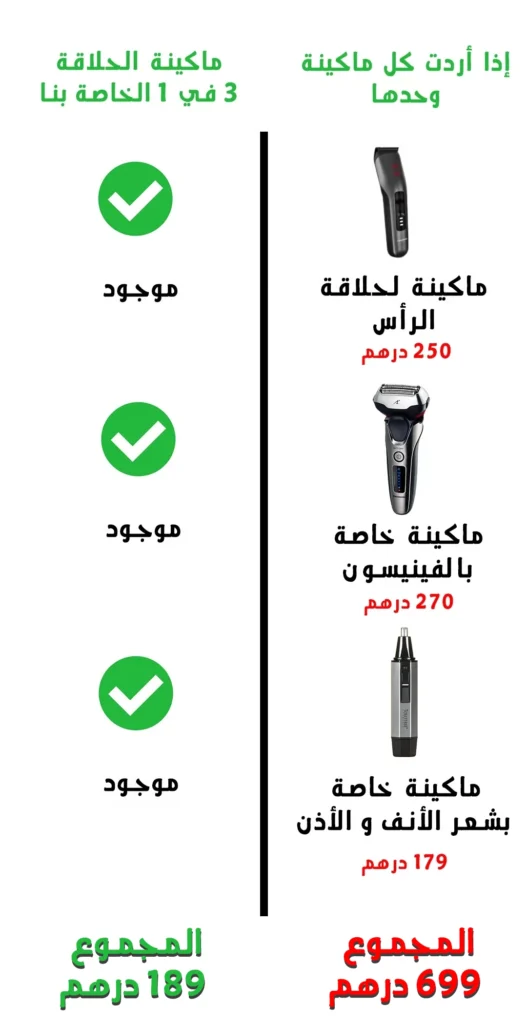 أولا دعني أقارن لك كم ستوفر من المال إذا كنت تملك ماكينة الحلاقة 5 فــــي 1 الخاصة بنا